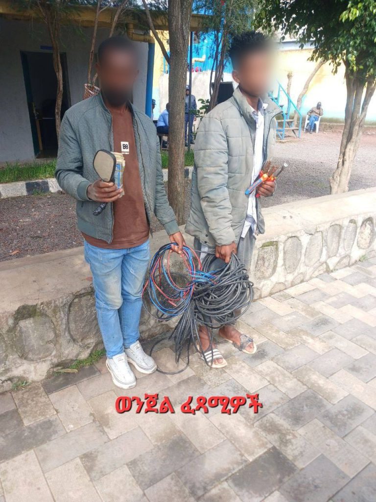 መምያው ለኤ ኤም ኤን በላከው መረጃ፤ መኩሪያ መዐዛ እና ተክላይ ደሳለኝ የተባሉ ተጠርጣሪዎች በቦሌ ክፍለ ከተማ ወረደ 11 ልዩ ቦታው ICT ፓርክ አካባቢ መስከረም 6 ቀን 2018 ዓ/ም በሌሊቱ ክፍለ ጊዜ ለህዝብ ግልጋሎ እንዲሰጥ በኮሪደር ልማት የለማን የኤሌክትሪክ ኬብል በመቁረጥ ይዘው ሊሰወሩ ሲሞክሩ በወቅቱ በወንጀል መከላከል ስራ ላይ በነበሩ የቦሌ ክፍለ ከተማ ፖሊስ መምሪያ የሰፈራ አካባቢ ፖሊስ ጣቢያ አባላት እጅ ከፍንጅ ተይዘዋል፡፡