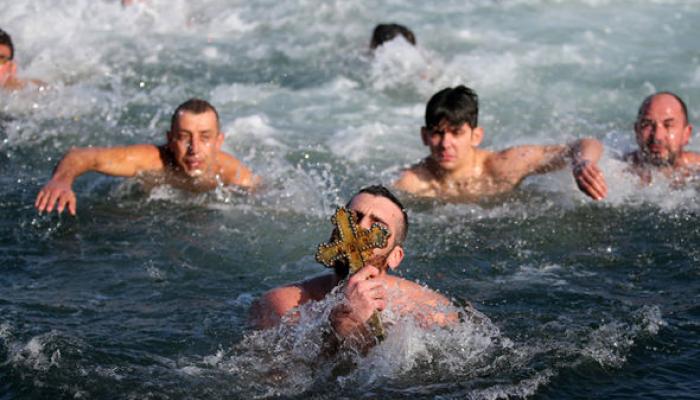 በግሪክና በቡልጋሪያ ካህኑ መስቀልን ወደ ቀዝቃዛ ባሕር ወይም ወንዝ ውስጥ ይወረውራሉ። ወጣቶችም መስቀሉን ለማውጣት ወደ በረዶው ውሃ ውስጥ ዘለው ይገባሉ። መስቀሉን ቀድሞ ያገኘ ሰው በዚያ ዓመት የተባረከ እንደሚሆን ይታመናል።
