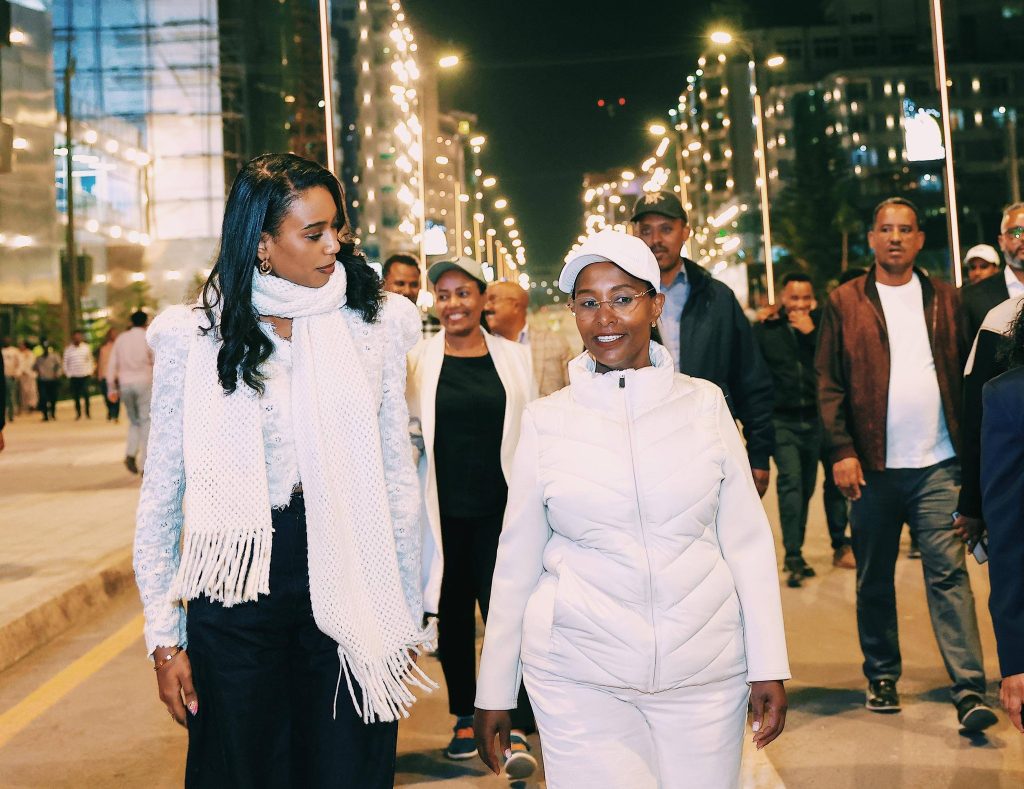 ካፕሽን፡- ከንቲባ ወይዘሮ አዳነች አቤቤ እና ከፍተኛ አመራሮች ከአትላስ ወደ ቦሌ ብራስ፣ ከቦሌ መድኃሊያለም እስከ ዓለም ሲኒማ ባለው መንገድ የተከናወነውን የኮሪደር ልማት በጎበኙበት ወቅት