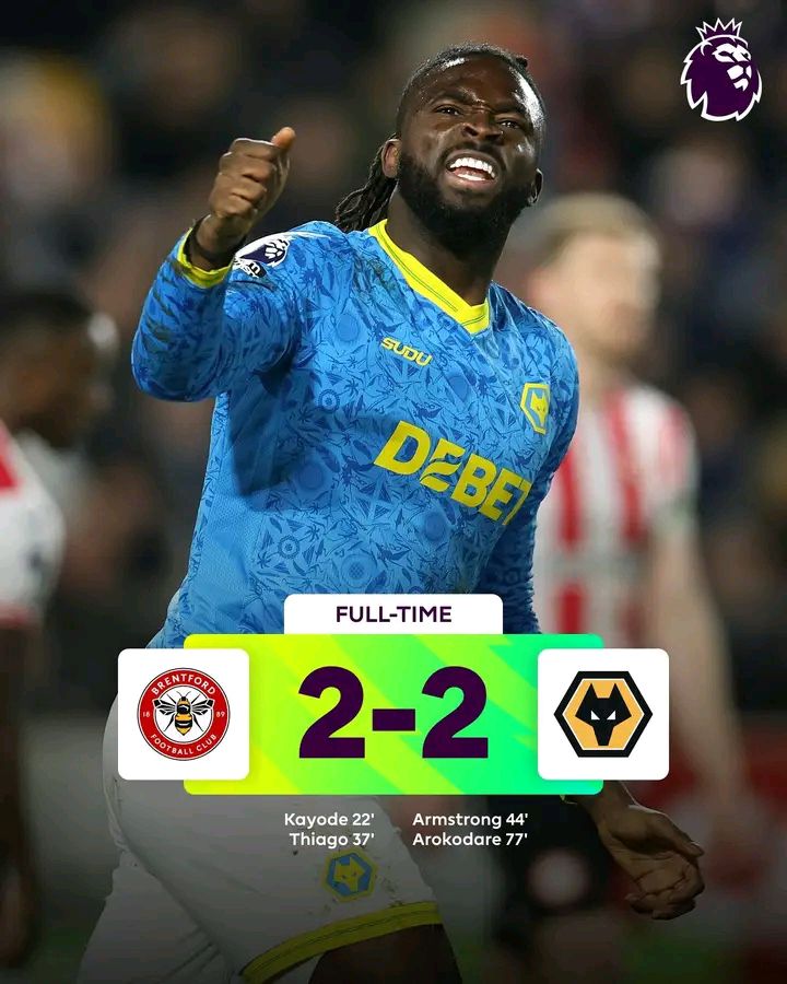 የእንግሊዝ ፕሪምየር ሊግ 30ኛ ሳምንት መርሐግብር የመጨረሻ ጨዋታ ያከናወኑት ብሬንትፎርድ እና ዎልቭስ 2ለ2 ተለያይተዋል።