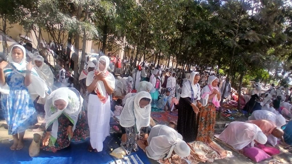 ምዕመናን ከጠዋት ጀምሮ እስከ ምሽቱ 12 ሰዓት ድረስ በቤተክርስቲያን በመገኘት አእላፍ ስግደቶችን ይሰግዳሉ።