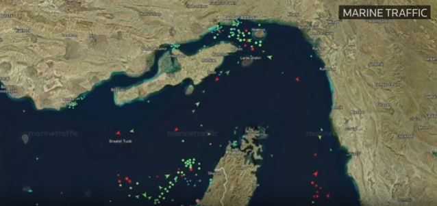 ከመርከብ መከታተያ ወይም ማሪን ትራፊክ የተገኘው መረጃ እንደሚያሳየው ቀይ ምልክቶች የነዳጅ እና የጋዝ ጫኝ መርከቦችን ያመለክታሉ።