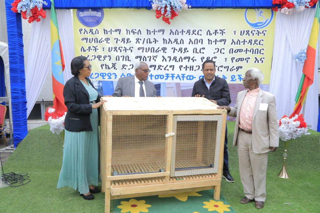 የአዲስ ከተማ ክፍለ ከተማ አረጋዊያን ዕድል ከተመቻቸላቸው መስራት ይችላሉ በሚል መሪ ቃል ለአረጋዊያን የገቢ ማስገኛ የሚውሉ ዶሮዎች፤ መኖ እና የዶሮ ኬጅ ድጋፍ አድርጓል።