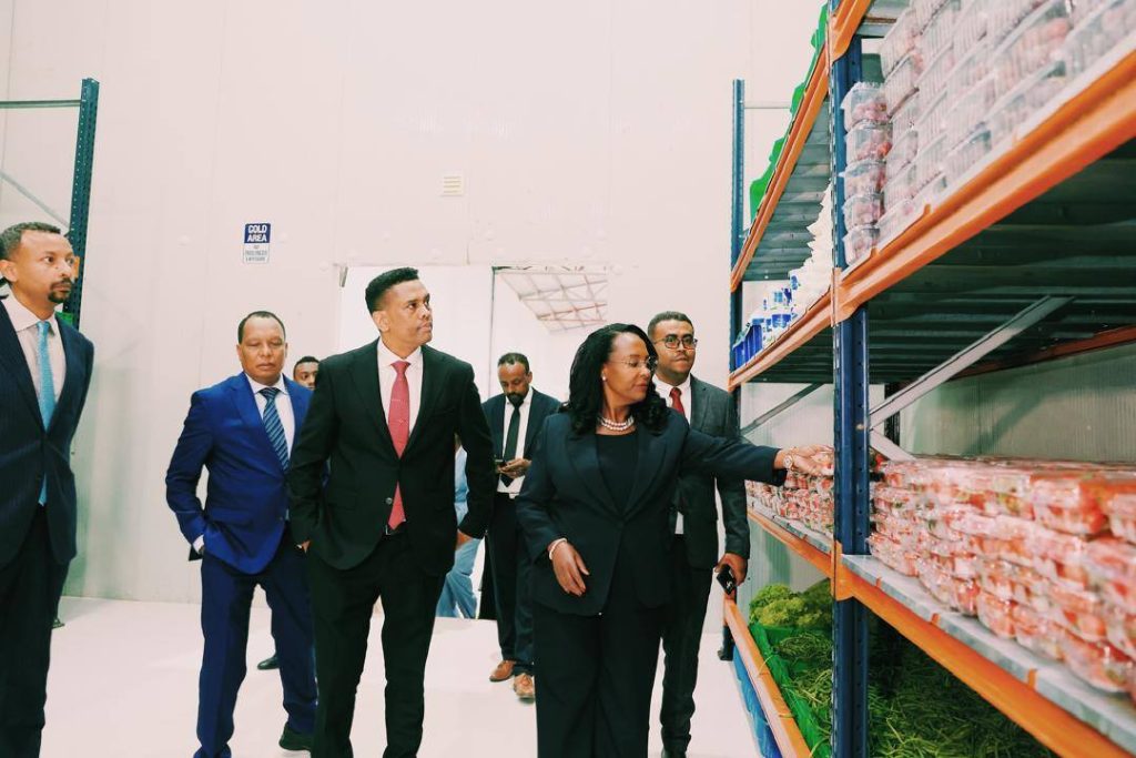 Kantiibaan Magaalaa Finfinnee Aadde Adaanech Abeebeen Ministira Daldalaa fi Walitti hidhamiinsa Naannawaa Kaasahun Goofee (Dr.) waliin gamoofi mankuusaa kuduraa, muduraa fi bu’aalee beeyladaa ammayyaa Koorporeeshinii Hojiilee Daldalaa Itoophiyaatiin ijaarame eebbisuun tajaajilaaf banaa taasisan..