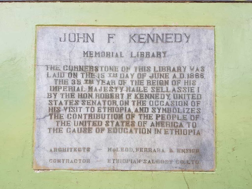 Barruun kun Gamoowwan akka Baankii Daldalaa, Tiyaatira Biyyaalessaa, Godaambaa Biyyaalessaafi Mana Kitaabaa Kenedii kan Yuunivarsiitii Finfinnee mooraa Guddicha Caffee Araaraatti argamu keessa jiru akka ijootti kaasuun irra deebiin yaadachiiseera.