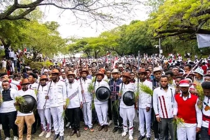 Akkaataa sirnaa fi duudhaa kabaja irreechaa irratti Oromoon uffannaa aadaan faayyamanii bokkuu, kallacha, Siiqqee, caaccuu fi marga jiidhaa qabatanii ”maareewoo, gabbisayyoo” jechuun uumaa faaruun galateeffataa gara malkaatti deemu jedhan Obbo Olaanaa Tashoomaa yaada AMN Diijitaaliif kennaanin.